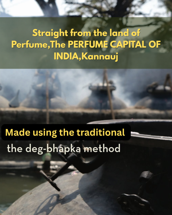 Our Pure Shamama attar(A Natural Perfume roll on) is Made using a combination of Saffron,Aromatic herbs,Spices,Jasmine,Roses in a Sandalwood oil base in the Traditional Deg and Bhapka method from the Perfume capital of India,Kannauj. Hydro distilled in a 100 years old traditional heirloom Distillation unit in Kannauj,UP,India.