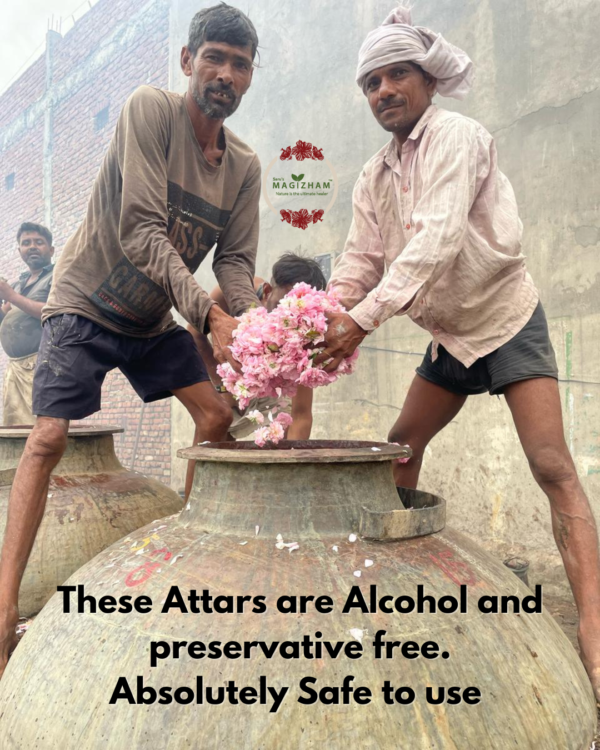 At Saru’s Magizham, we took immense efforts in procuring the Purest form of Floral Attar that you ll ever try.The Authenticity can be felt the moment you open the bottle.And The Fragrance of the Attar lasts really long.
